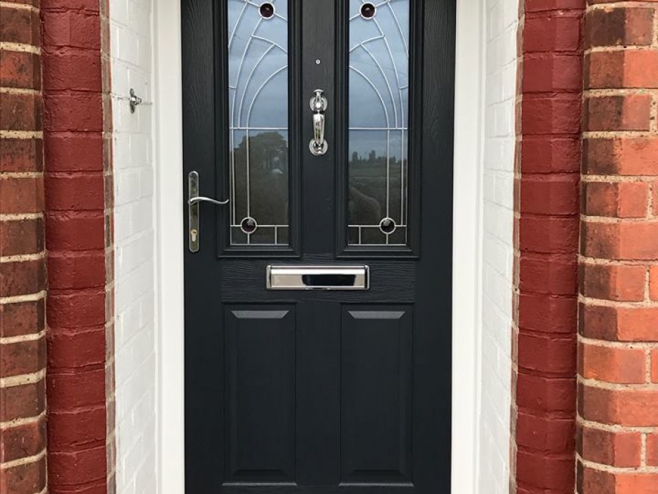 This customer decided on the Harlech 2 Glazed Solidor Composite Door with the Jewel Glass design. Chrome Furniture with an upgraded Schroll Door Knocker. We also removed the customers outer door to make a beautiful entrance for the door. We install Composite Doors, Patio Doors, Conservatorys, Guardian Roofs and uPVC Windows in Rushden, Higham Ferrers, Bedford and Bedfordshire Villages, Wellingborough, Northampton, Olney, Milton Keynes.